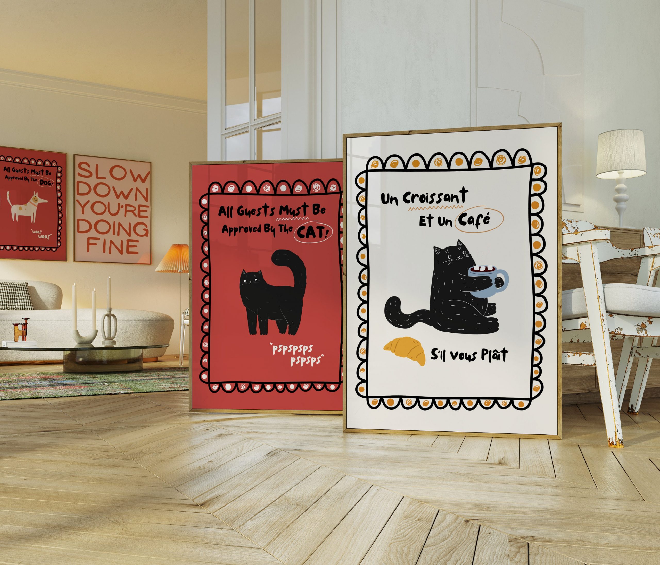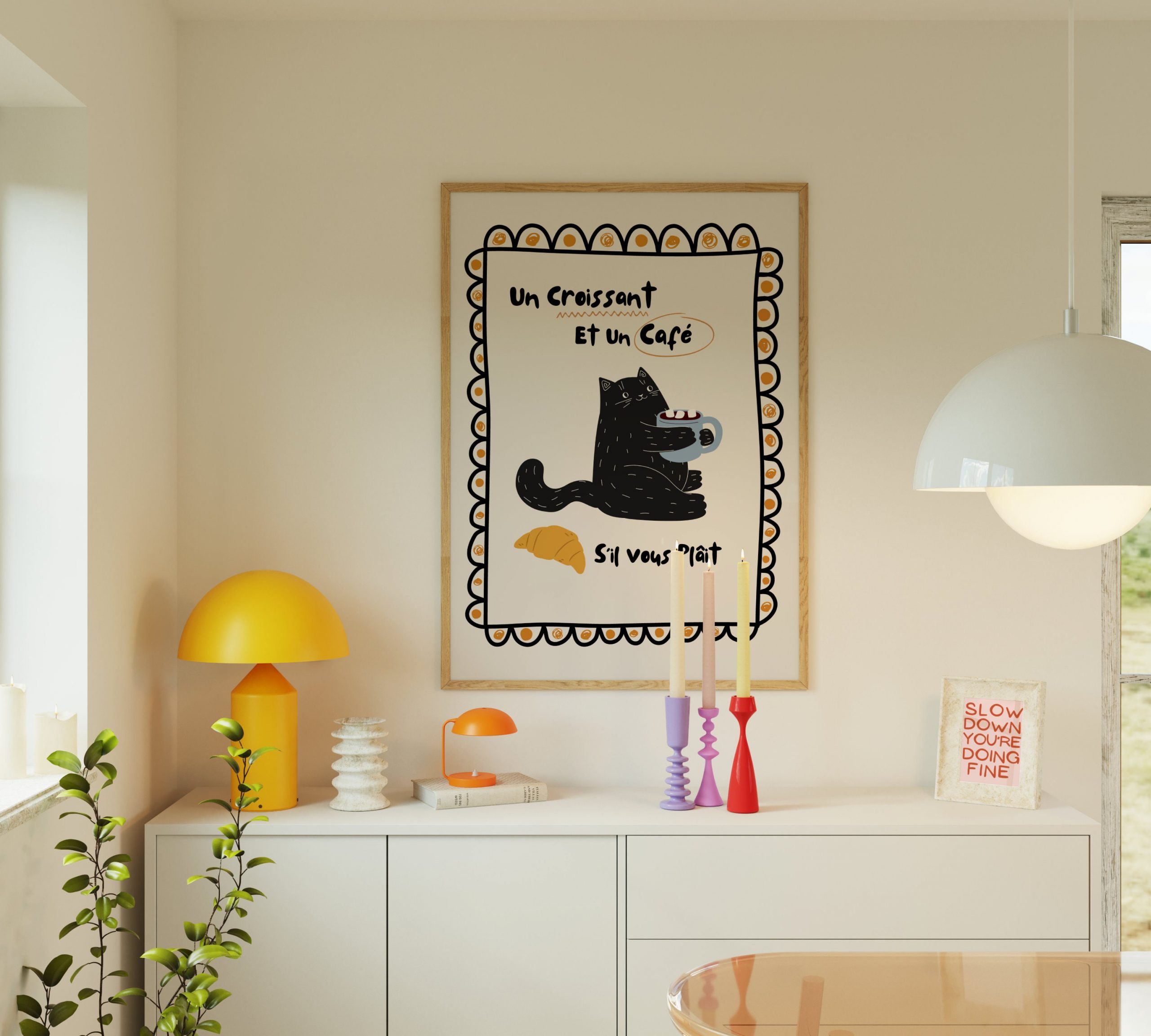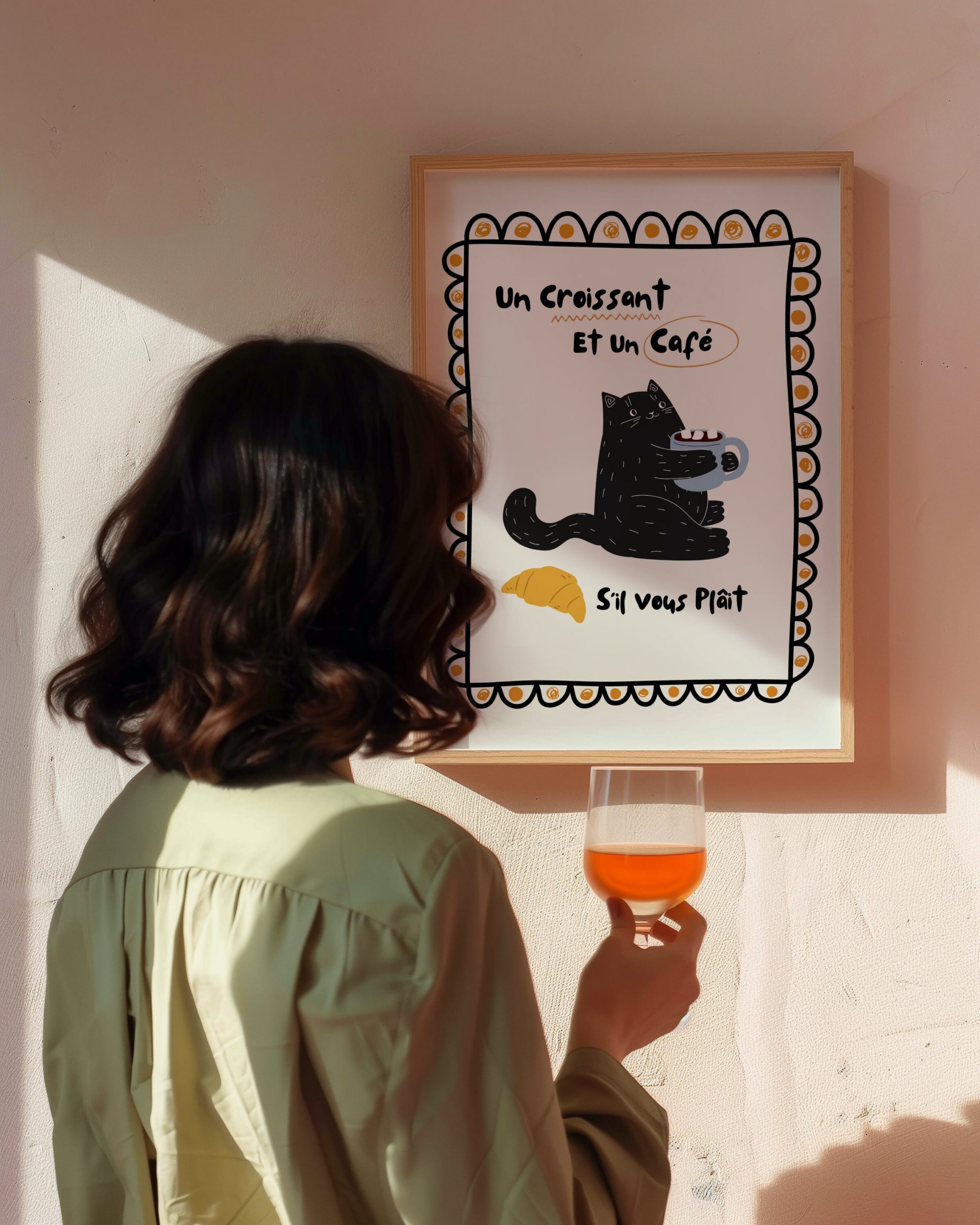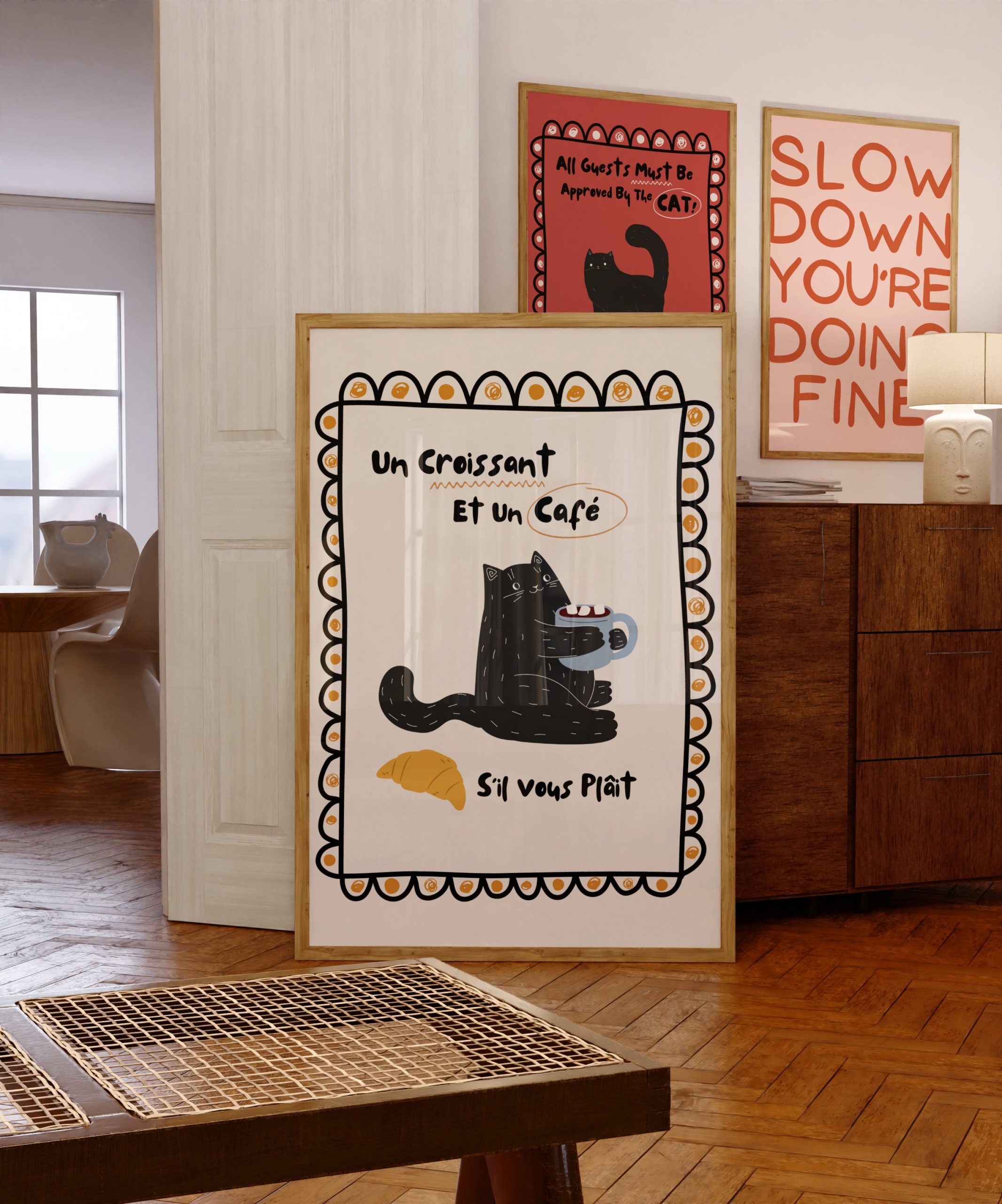 This unique piece of wall art effortlessly combines minimalist aesthetics with a modern, minimalist twist. Perfect addition to any room, especially the kitchen or living room. Whether you’re looking to infuse some personality into your home or create a bold focal point, our Cat Lover Un Croissant et un Cafe Si Vous Plait Print is the ideal choice. Explore the world of beautiful, modern, and minimalist wall art and enhance your living space today.
