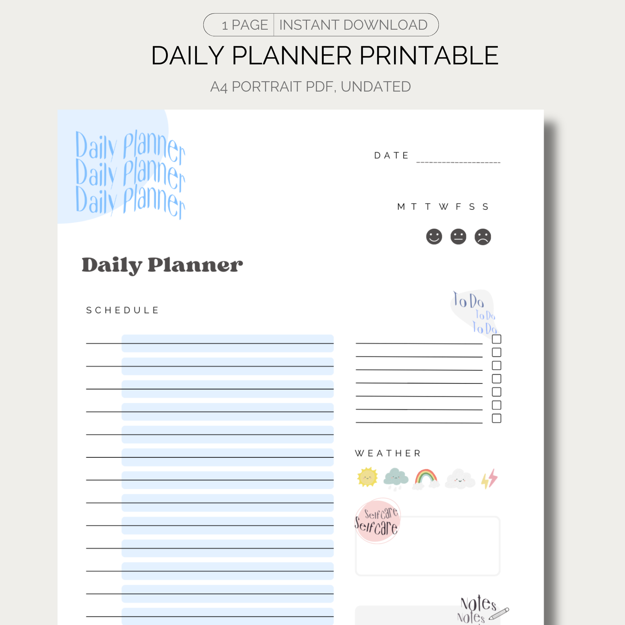 This Happy Blue – Daily Digital Planner is the perfect solution for anyone who is looking for a simple and organized way to plan their day. It is undated, which means it can be used at any time, making it ideal for those who have busy schedules or need to manage their time better. The design is printable and can be easily edited from an electronic device, making it convenient to carry or have on your desk.