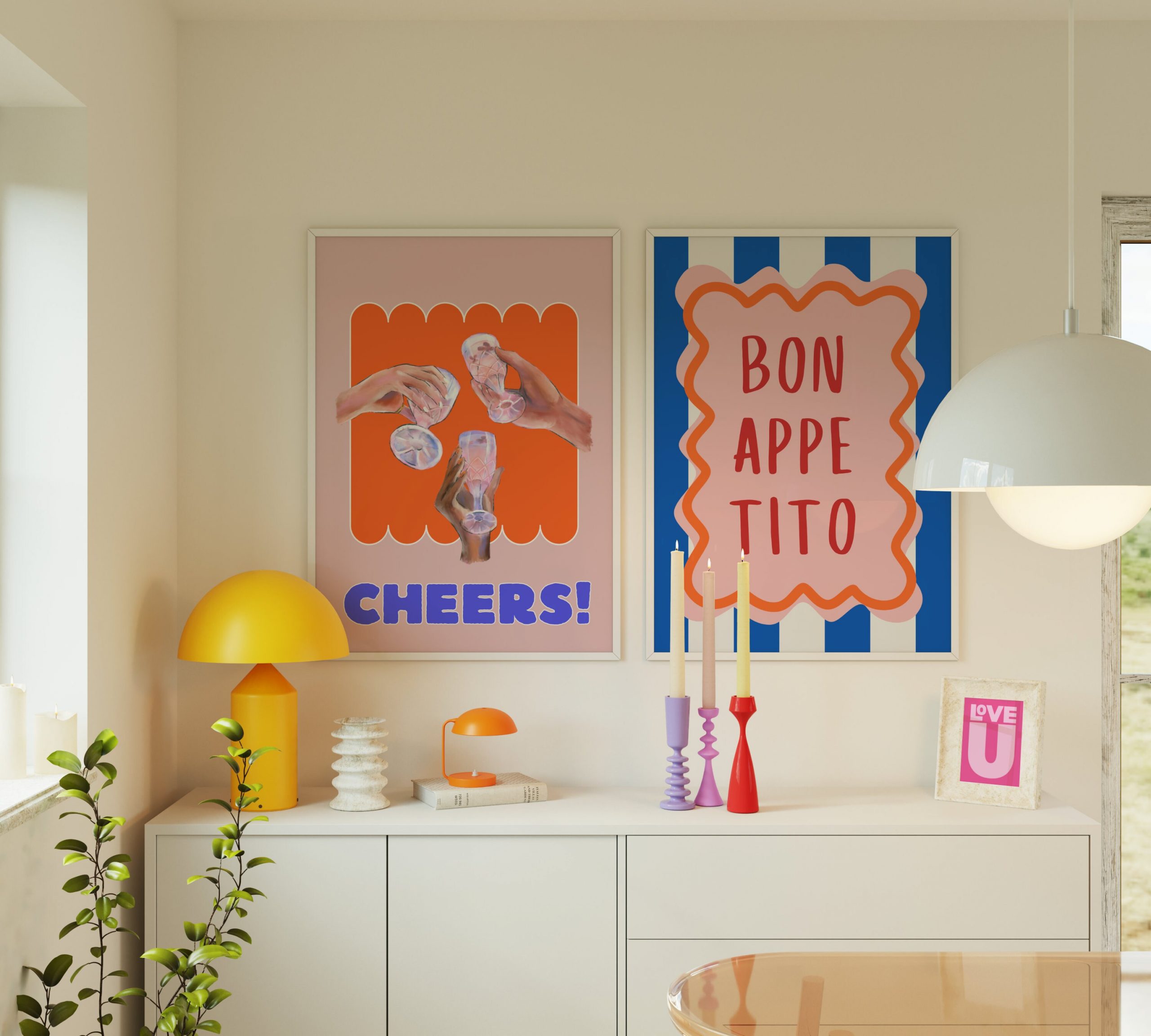 Bring a touch of Italian charm and a burst of dopamine to your kitchen with our Set of 2 – Bon Appetit Cheers | Eclectic Decor Italian Print. This vibrant and lively kitchen print will transport you to the heart of Italy, where fragrant aromas and mouthwatering flavors abound. The maximalism poster features retro-inspired elements and a preppy print, adding a unique and stylish touch to your restaurant decor. Hang it proudly on your wall and let the bold colors and whimsical design inspire culinary adventures. Crafted with attention to detail, this poster is a must-have for any foodie or lover of eclectic decor.