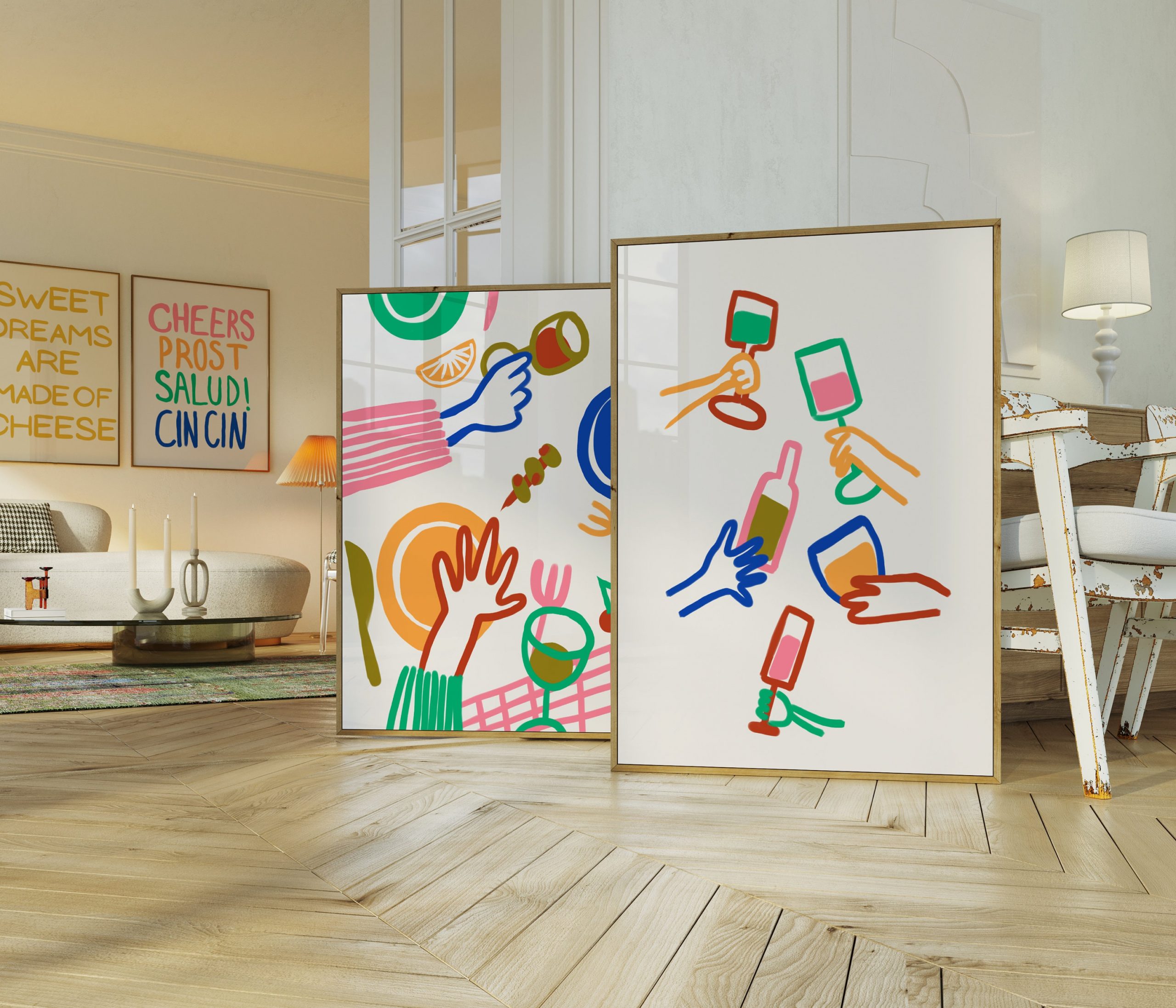 This unique piece of wall art effortlessly combines minimalist aesthetics with a modern, eclectic twist. Featuring a striking burst of vibrant blue, this digital download adds a pop of color to your space, making it a perfect addition to any room, especially the studio or living room. Whether you’re looking to infuse some personality into your home or create a bold focal point, our Set of 2 – Hand Drawn Dinner is the ideal choice. Explore the world of colorful wall art and enhance your living space today.