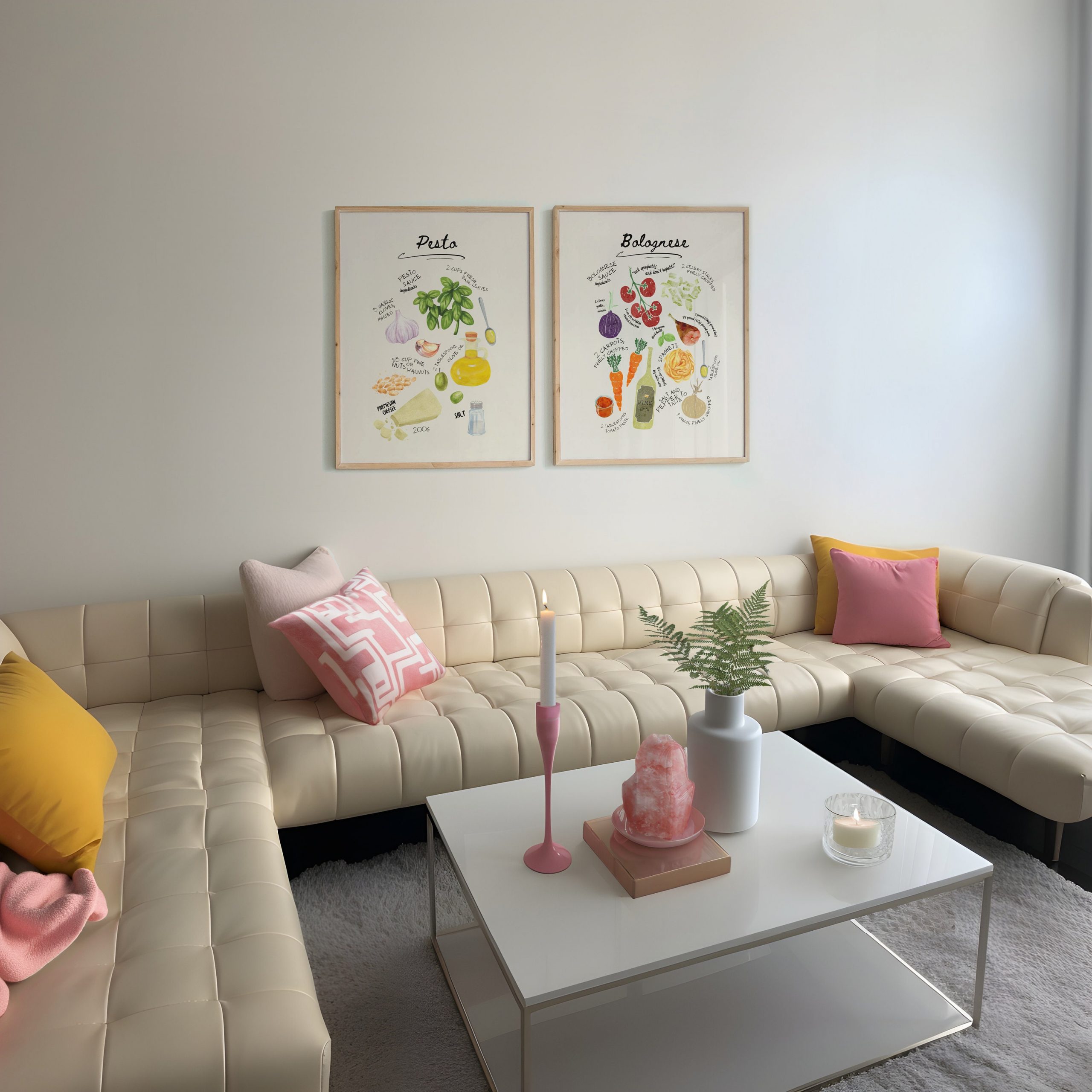 This unique piece of wall art effortlessly combines minimalist aesthetics with a modern, eclectic twist. Featuring a striking burst of vibrant yellow, this digital download adds a pop of color to your space, making it a perfect addition to any room, especially the studio or living room. Whether you’re looking to infuse some personality into your home or create a bold focal point, our Set of 2 – Pesto Bolognese Recipe Print is the ideal choice. Explore the world of colorful wall art and enhance your living space today.