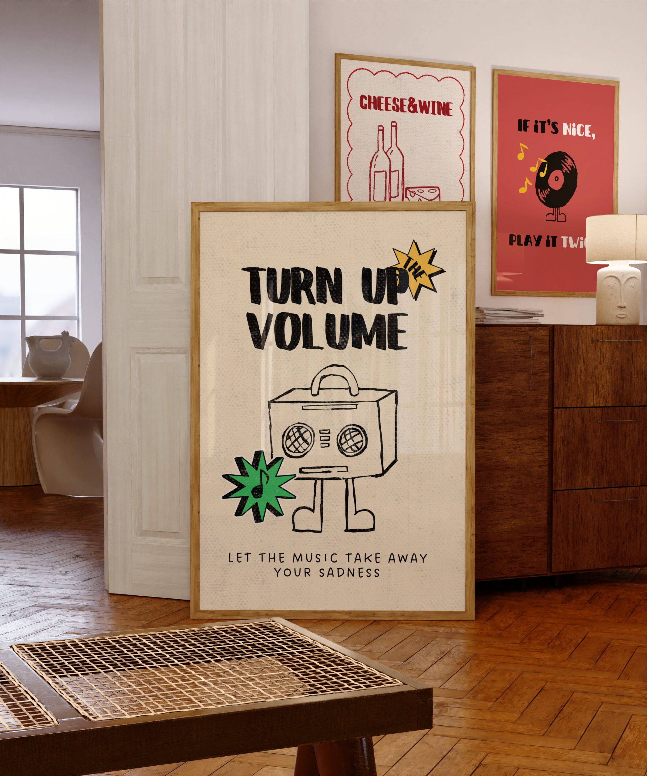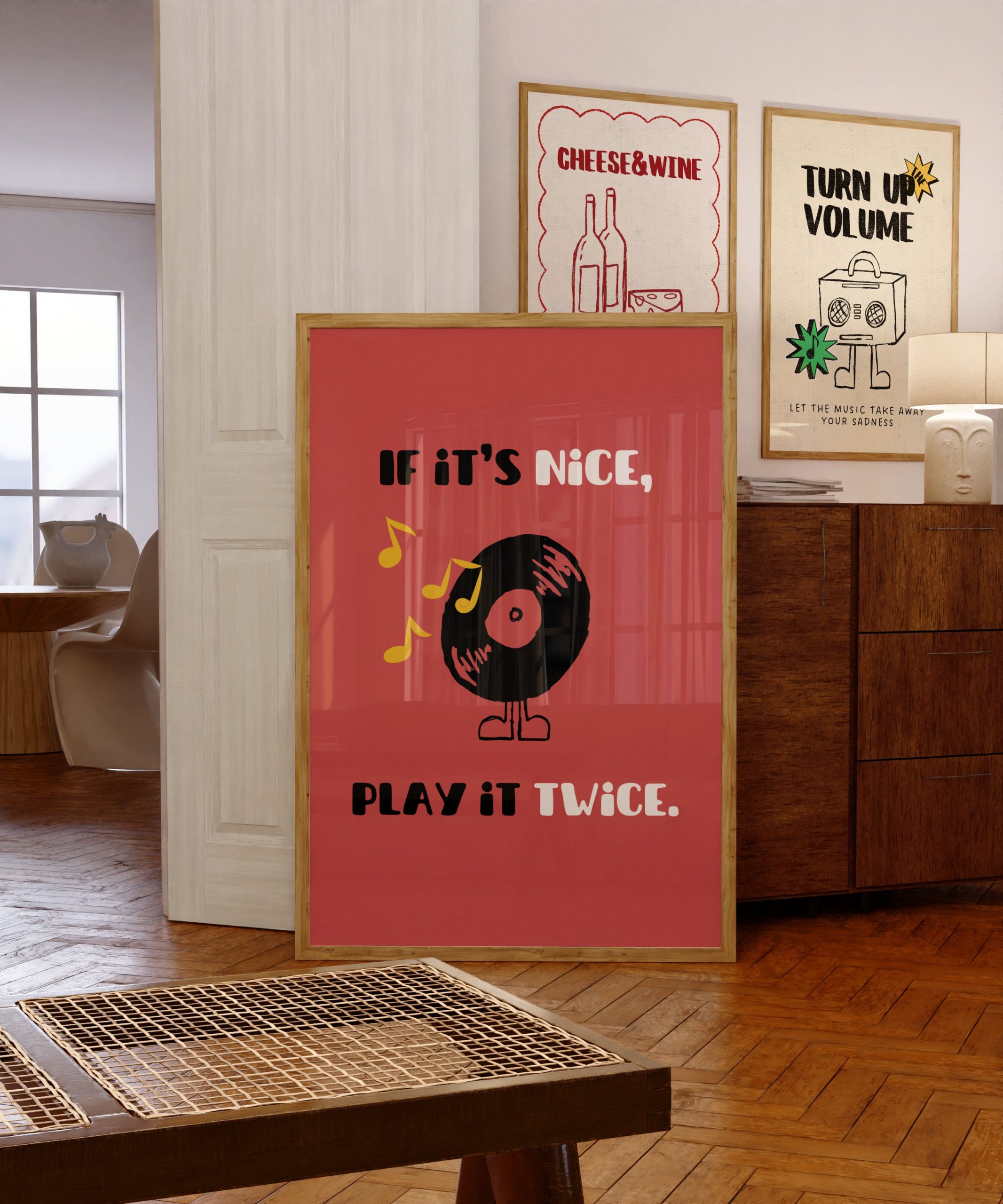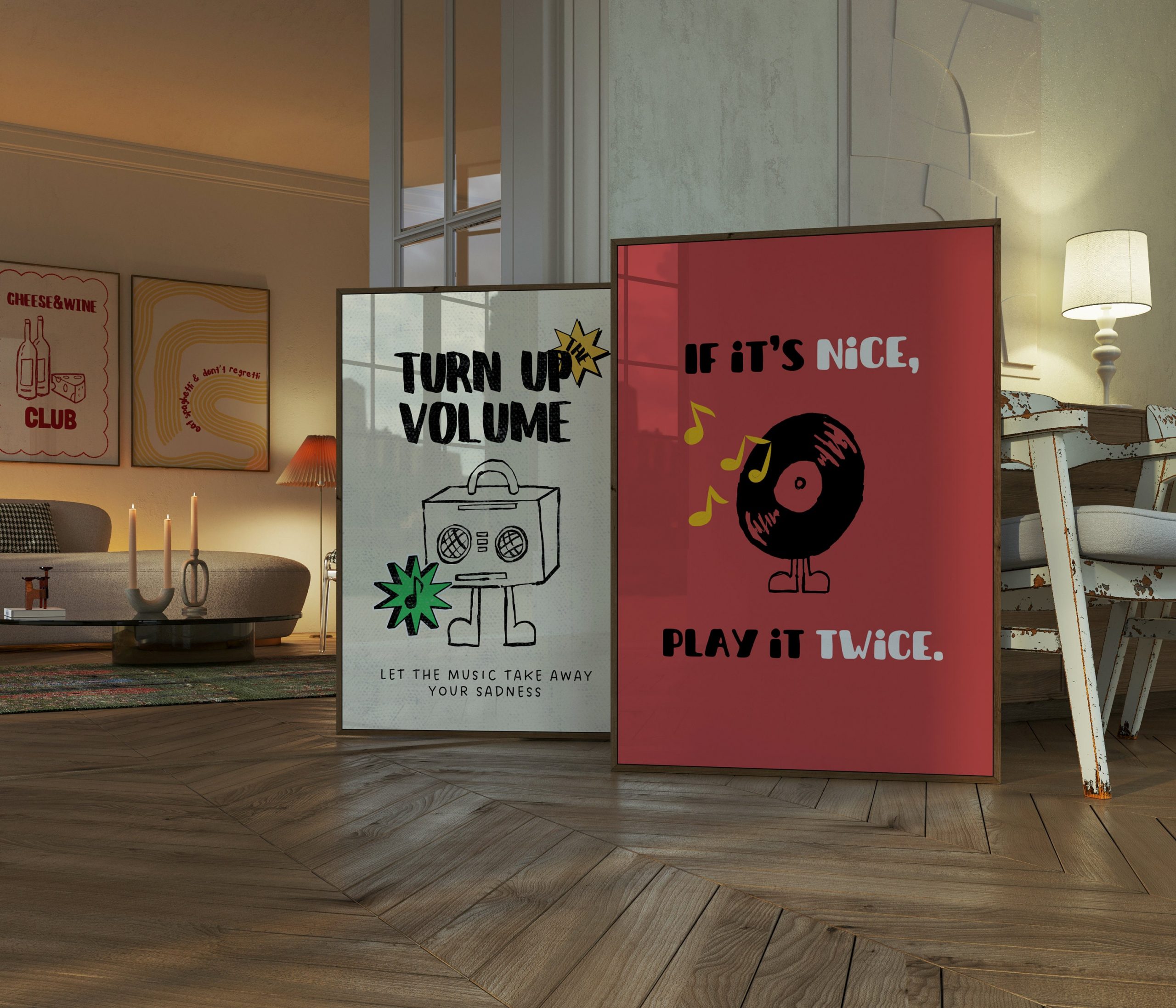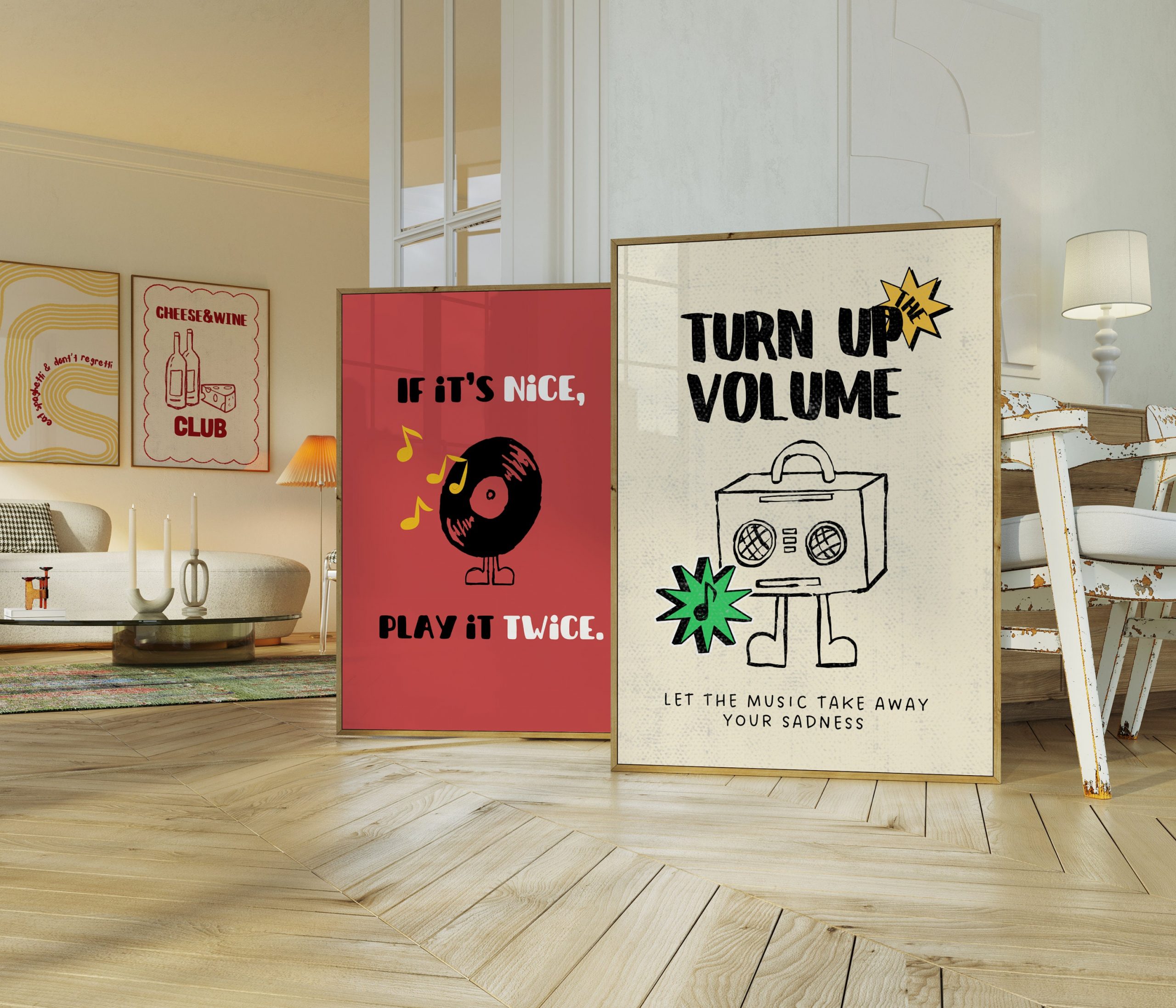 Set of 2 – Retro Music Band Print | If Its Nice Play It Twice Print, Turn Up The Volume, Vynil Record Party Disco Wall Art 70s Character PDF