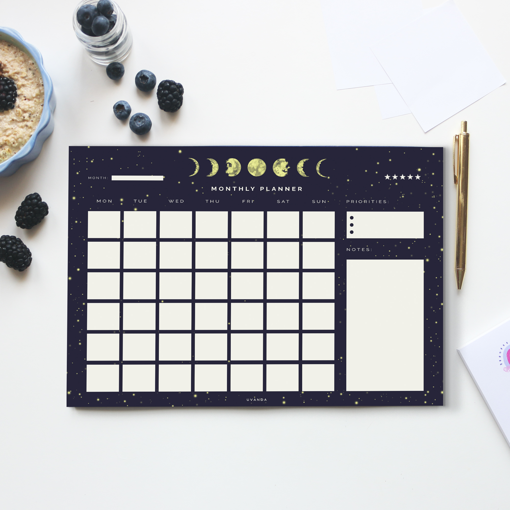 It inspires us and makes us dream. Observe the night sky and the moon is enrapturing. It makes you reflect, review your priorities and take action. That’s what we want you to achieve with this planner. Get away from the mental noise of every day. Dream and make your goals come true by writing down what you need to make it happen.